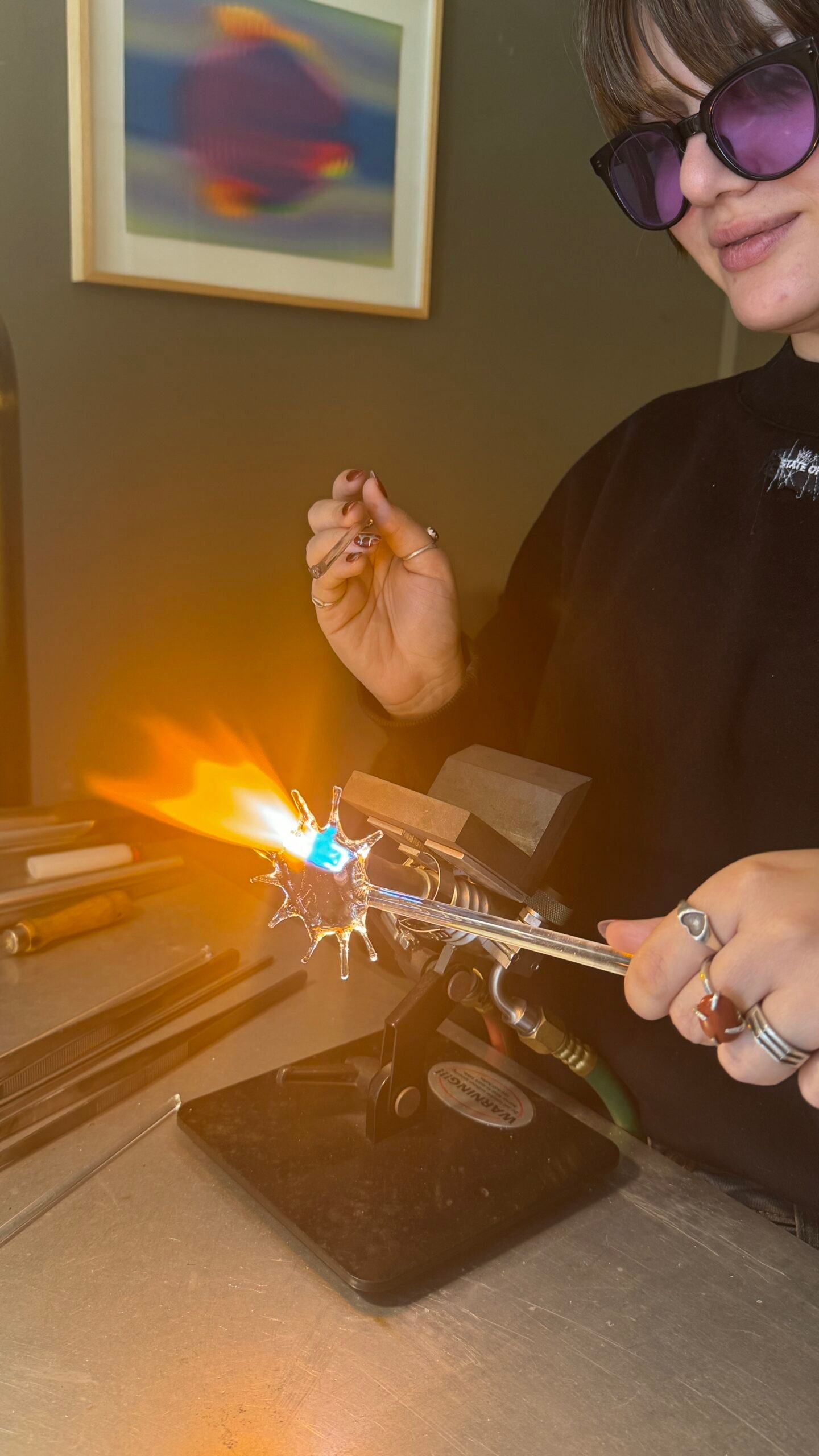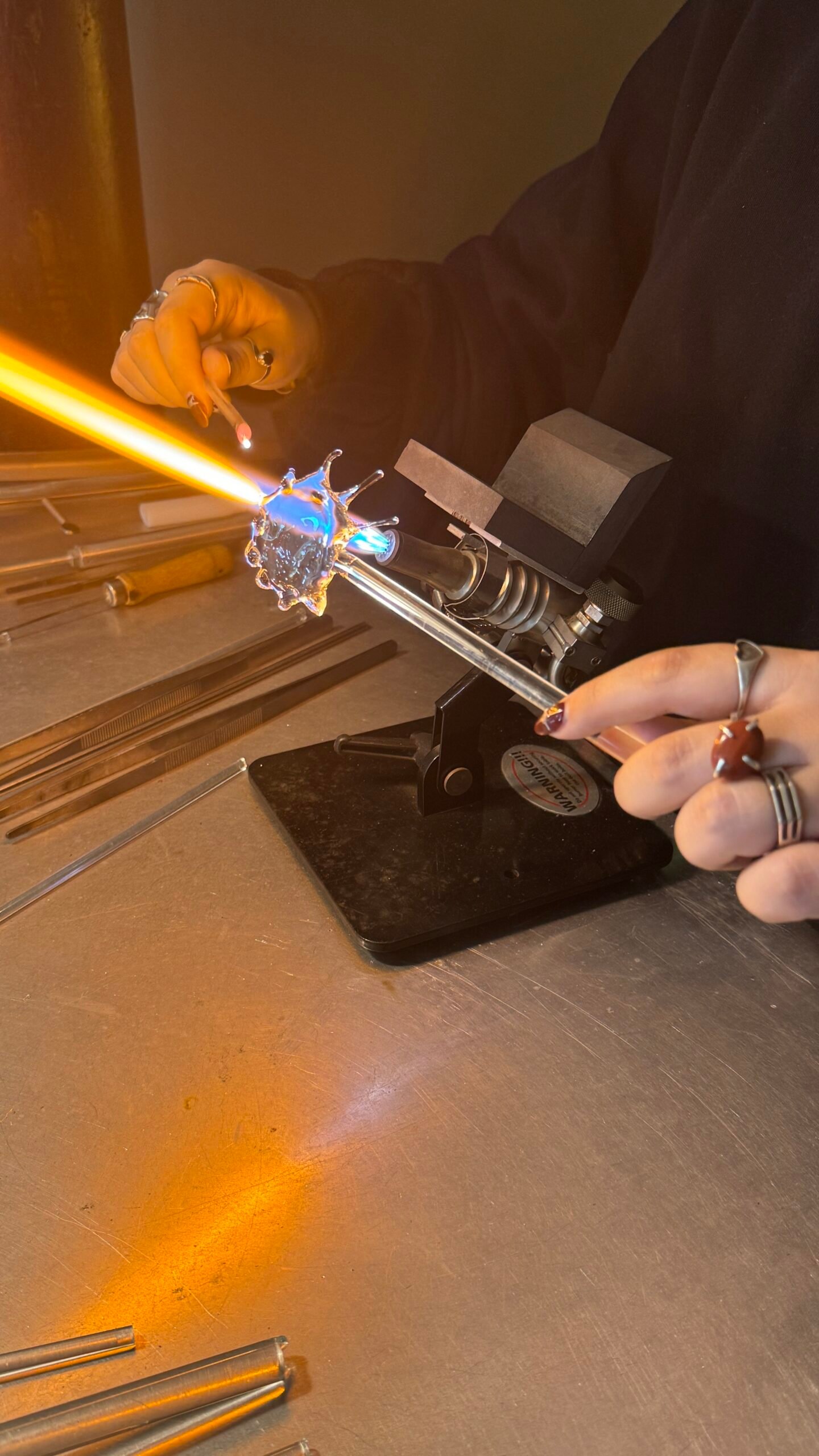 Ao longo do encontro, trabalharemos com o vidro borossilicato — material reconhecido por sua resistência e versatilidade — investigando suas possibilidades no contexto da joalheria contemporânea.